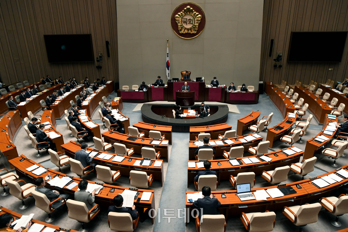 정세균 국무총리가 28일 서울 여의도 국회에서 긴급재난지원금 지급 추가경정예산안 심사를 위해 열린 예산결산특별위원회 전체회의에서 제안설명을 하고 있다.