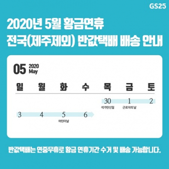 GS포스트박스를 운영중인 씨브이에스넷 관계자는 ”황금연휴 동안 중고거래를 이용하거나 택배를 보내거나 받을 일이 있는 소비자라면 365일 연중무휴로 이용할 수 있고, 초저가로 택배서비스를 이용할 수 있는 GS25 반값택배를 적극적으로 추천한다”고 말했다.