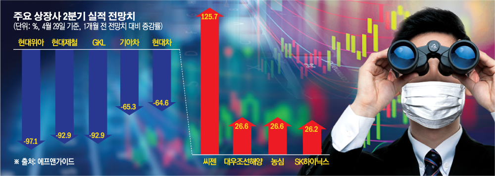 코로나19 사태가 길어지면서 올해 2분기 실적 전망치가 바닥을 기록할 전망이다.