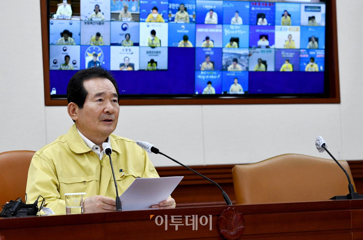 정세균 국무총리가 3일 서울 종로구 정부서울청사에서 열린 신종 코로나바이러스 감염증(코로나19) 대응 중앙재난안전대책본부(중대본) 회의에서 모두발언을 하고 있다.