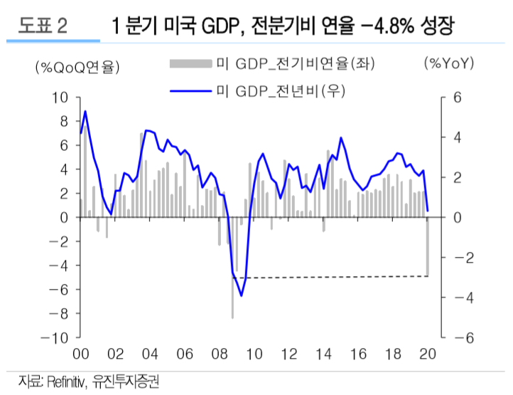 이상재 연구원은 “5월 글로벌 경제와 금융시장이 분수령에 직면했다”며 “코로나19로 야기된 경제 및 기업이익 악화 현실화는 정부 부양책과 점진적 경재활동 재개 기대로 균형을 맞췄다”고 말했다.