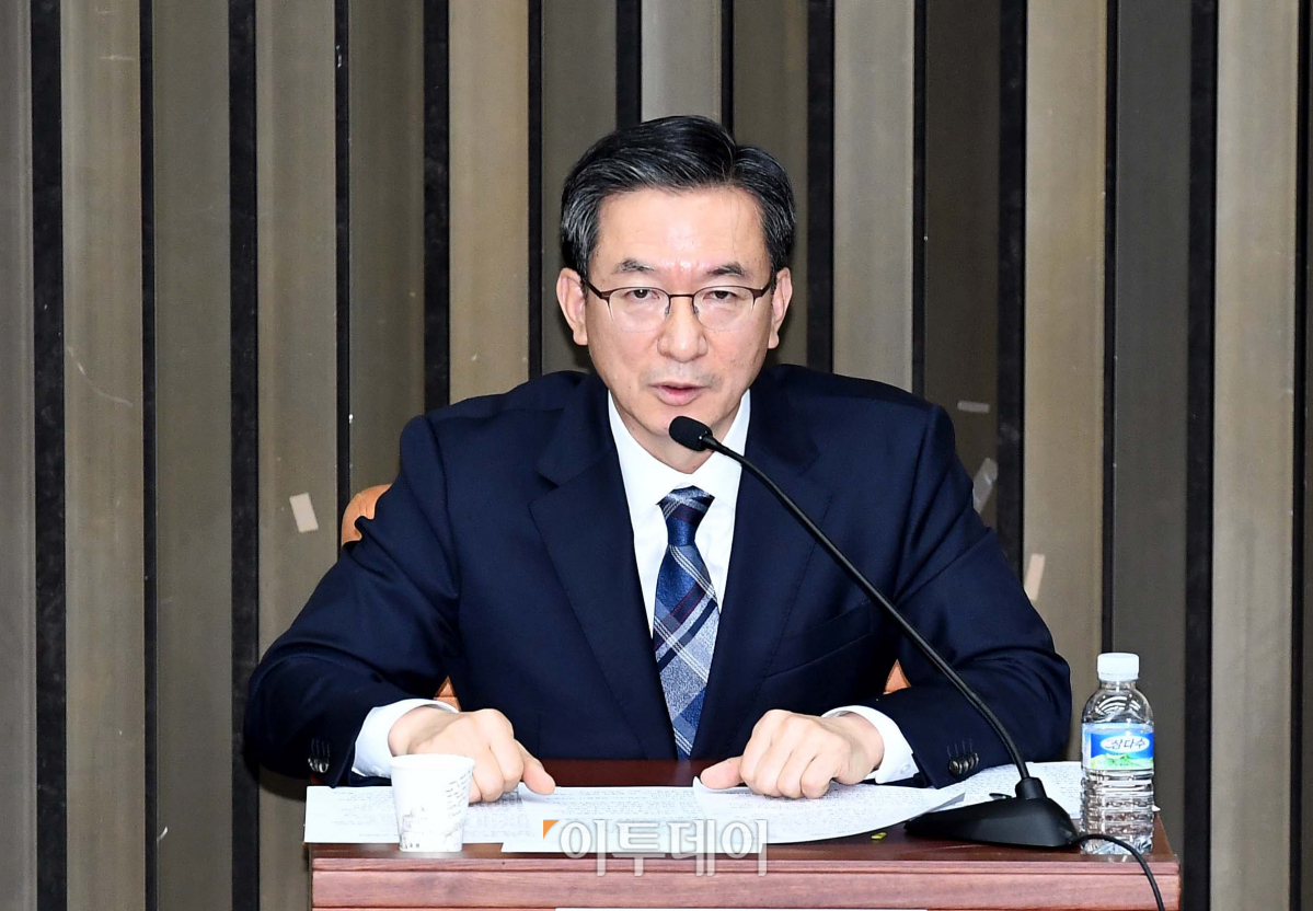 6일 서울 여의도 국회에서 열린 더불어민주당 원내대표 후보자 합동토론회에서 정성호 후보자가 발언하고 있다.