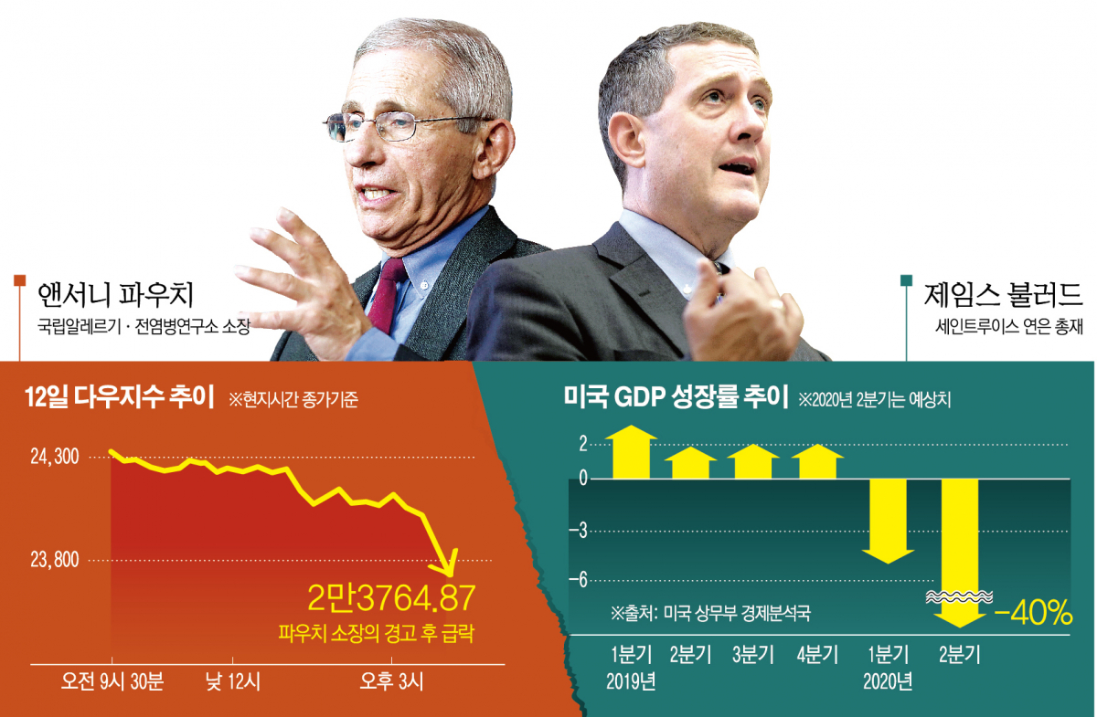 신종 코로나바이러스 감염증(코로나19) 사태의 여파로 미국 경제가 역사적인 침체의 기로에 놓인 가운데 금융당국자들은 경제 활동 중단이 장기화하면 대규모 기업 파산이 일어날 수 있다고 한 목소리로 경고했다.
