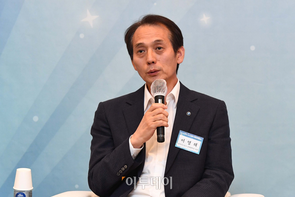 13일 서울 여의도 전경련회관에서 열린 ‘2020 함께하는 기업 CSR 국제 콘퍼런스’에서 이영태 한국가스공사 상생협력처장이 패널토론에 참여하고 있다. 이투데이가 기업의 사회적 책임(CSR)의 사회적 가치 측정방법과 기준 등을 주제로 개최한 이번 국제 콘퍼런스는 신종 코로나바이러스 감염증(코로나19) 영향으로 유튜브·페이스북 등을 통해 녹화 중계된다.