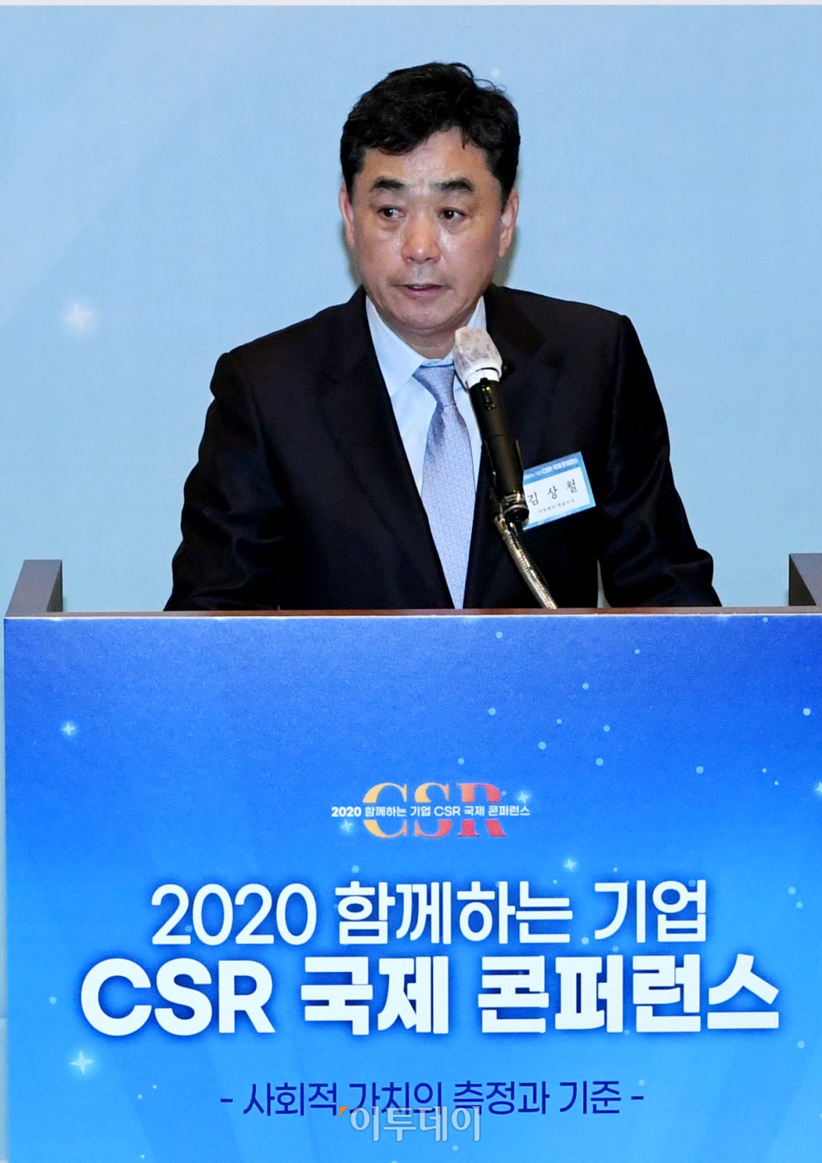 김상철 이투데이미디어 대표이사가 13일 서울 여의도 전경련회관에서 열린 ‘2020 함께하는 기업 CSR 국제 콘퍼런스’에서 인사말을 하고 있다. 이투데이가 기업의 사회적 책임(CSR)의 사회적 가치 측정방법과 기준 등을 주제로 개최한 이번 국제 콘퍼런스는 신종 코로나바이러스 감염증(코로나19) 영향으로 유튜브·페이스북 등을 통해 녹화 중계된다.
