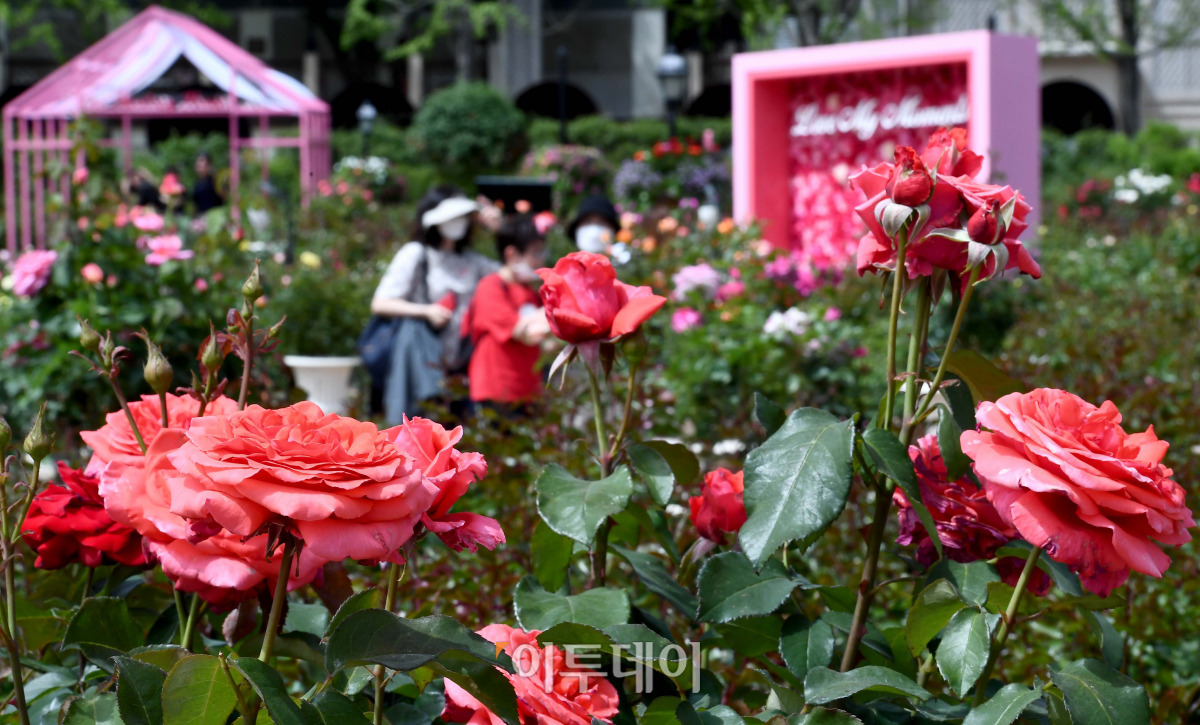 ‘생활 속 거리두기’로 일상으로의 복귀가 차분하게 진행되는 가운데 전국이 완연한 봄날씨를 보인 14일 경기 용인시 처인구 에버랜드 장미원을 찾은 시민들이 장미를 관람하며 계절의 여왕 5월을 즐기고 있다. 에버랜드는 오는 15일부터 한 달여 간 약 2만㎡ 규모의 장미원에 720종 300만 송이의 장미가 만개할 것으로 예상했다.
