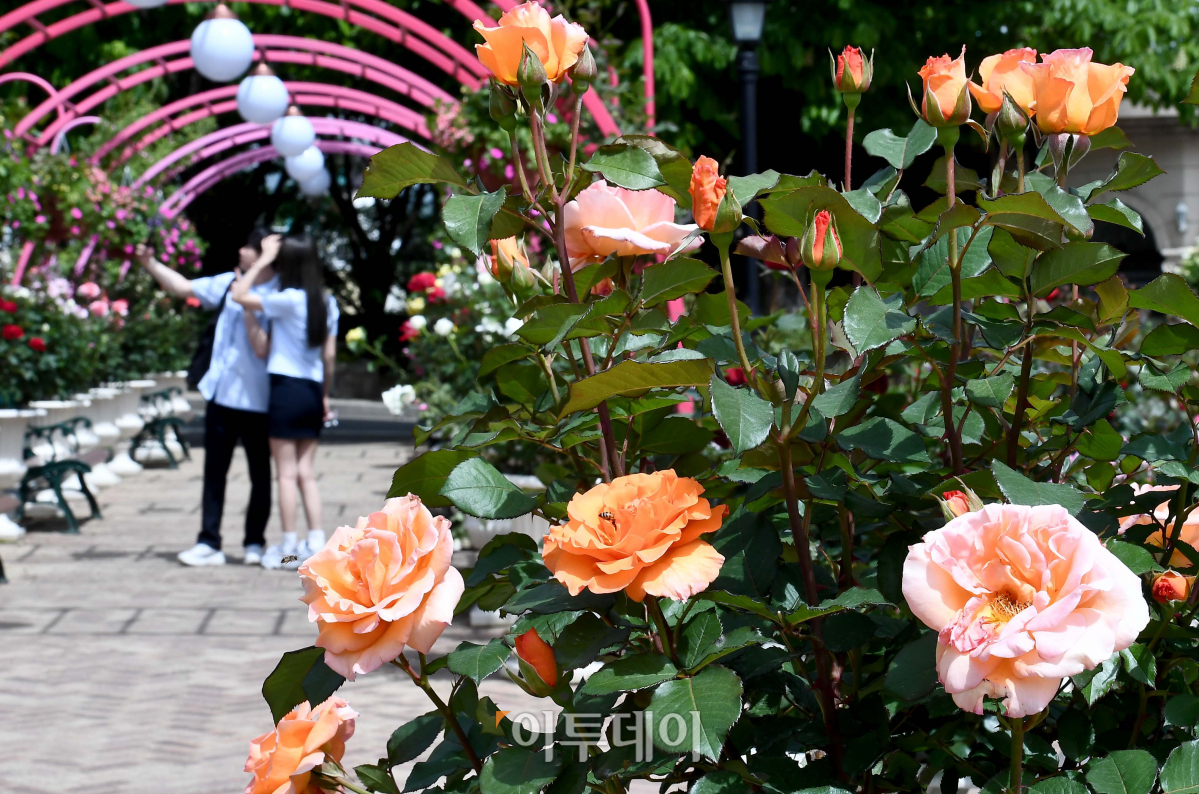 ‘생활 속 거리두기’로 일상으로의 복귀가 차분하게 진행되는 가운데 전국이 완연한 봄날씨를 보인 14일 경기 용인시 처인구 에버랜드 장미원을 찾은 시민들이 장미를 관람하며 계절의 여왕 5월을 즐기고 있다. 에버랜드는 오는 15일부터 한 달여 간 약 2만㎡ 규모의 장미원에 720종 300만 송이의 장미가 만개할 것으로 예상했다.