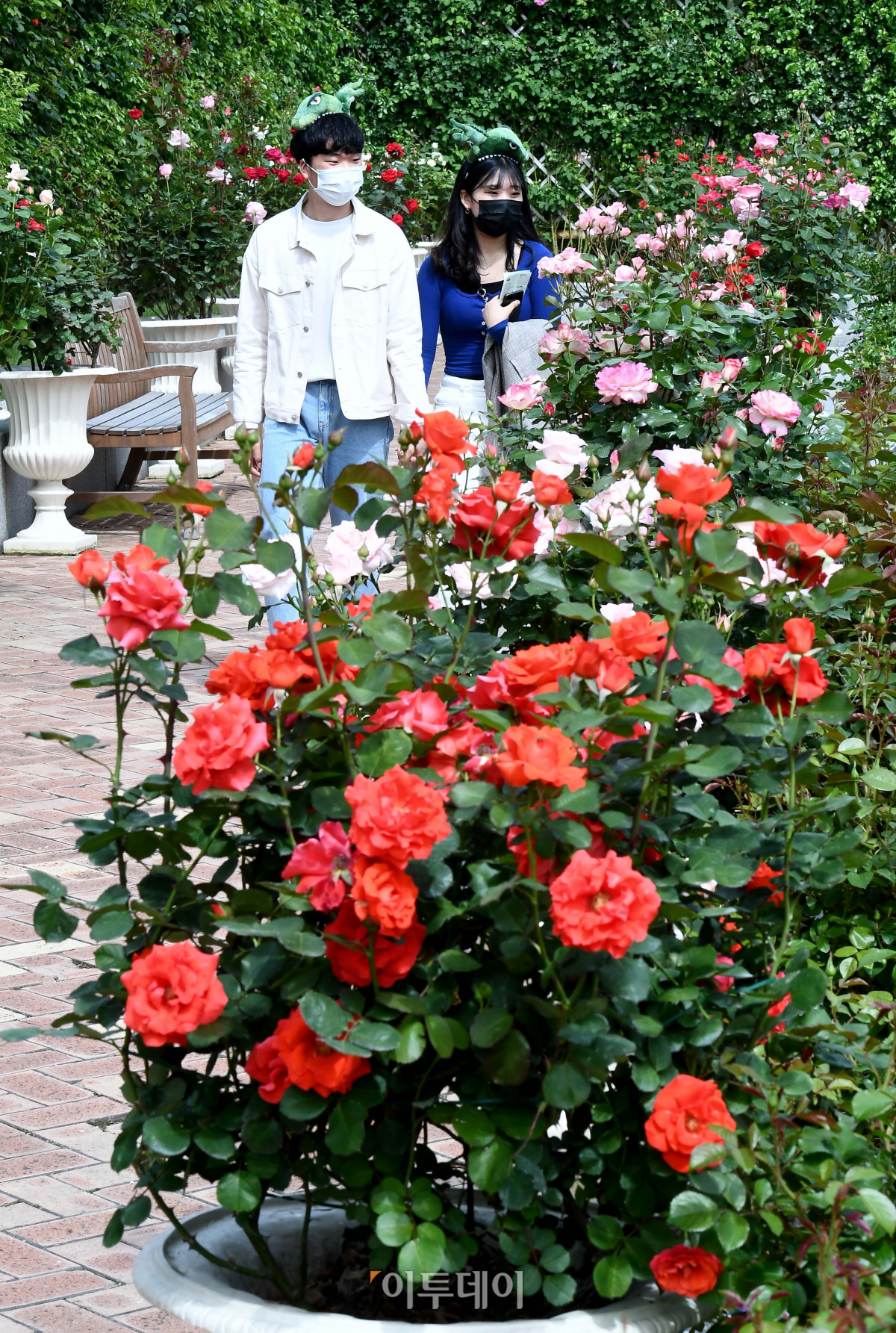 ‘생활 속 거리두기’로 일상으로의 복귀가 차분하게 진행되는 가운데 전국이 완연한 봄날씨를 보인 14일 경기 용인시 처인구 에버랜드 장미원을 찾은 시민들이 장미를 관람하며 계절의 여왕 5월을 즐기고 있다. 에버랜드는 오는 15일부터 한 달여 간 약 2만㎡ 규모의 장미원에 720종 300만 송이의 장미가 만개할 것으로 예상했다.