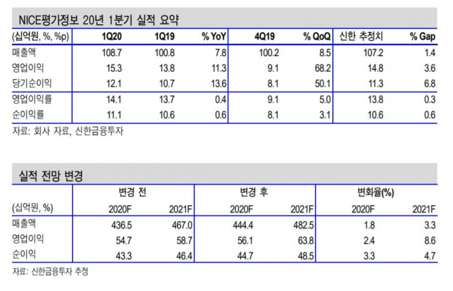 NICE평가정보는 1분기 매출액으로 지난해 같은 기간보다 7.8% 증가한 1087억 원, 영업이익은 11.3% 오른 153억 원을 기록했다.