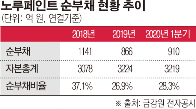 노루페인트가 지난해 순부채를 줄이면서 재무구조 개선에 나섰다. 다만 매출 성수기를 대비한 차입금 증가세가 뚜렷해 최근 부채가 다시 늘고 있다. 코로나19에 따른 수요 감소로 영업활동 현금흐름도 주춤하는 만큼 차입금 상환에 지속적인 관리가 필요해 보인다.