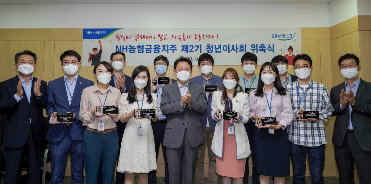 NH농협금융지주는 22일, 중구 소재 농협금융 본관 회의실에서 자유로운 소통을 통한 수평적이고 유연한 조직문화 확산을 위해 제2기 청년이사회 위촉식을 개최했다고 밝혔다. 청년이사회는 수평적이고 유연한 조직문화 확산을 위해 지난 2019년 발족된 자유 토론 조직이다.