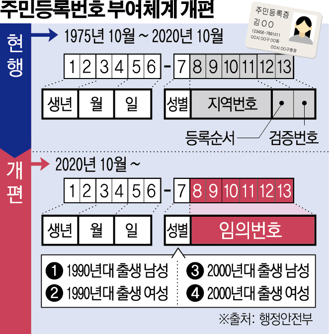 이는 1975년에 현재 주민등록번호 부여 체계가 정해진 지 45년 만의 개편이다.
