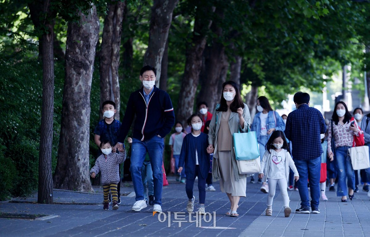 2차 등교개학 첫 날인 27일 서울 송파구 세륜초에서 초등학교 1·2학년 어린이들이 교실로 향하고 있다. 이날부터 전국 고등학교 2학년과 중학교 3학년, 초등학교 1·2학년, 유치원생 237만명이 등교 수업을 시작한다. 다만 서울과 경기, 경북 등 일부 학교와 유치원에서는 코로나19 확진자 발생, 접촉자 파악 등의 이유로 등교가 연기됐다.