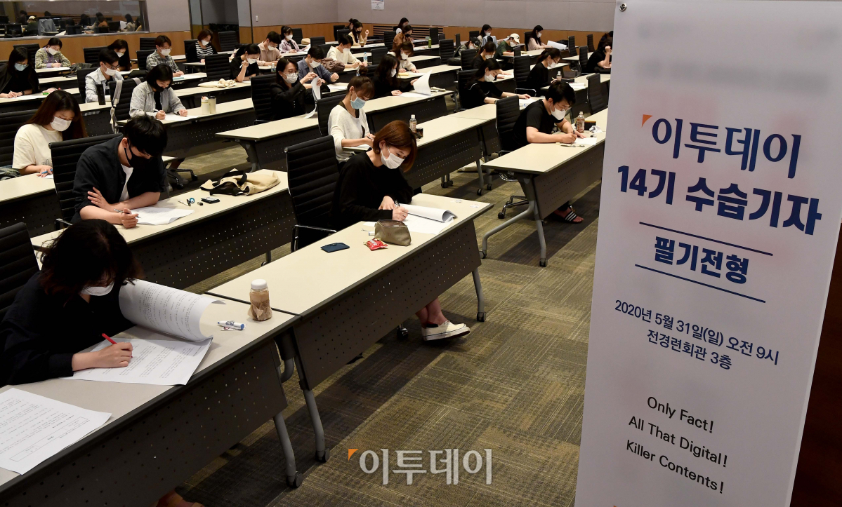 31일 서울 여의도 전경련회관 컨퍼런스센터에서 열린 이투데이 제14기 수습기자 공채 필기전형에서 응시생들이 시험을 치르고 있다. 신태현 기자 holjjak@