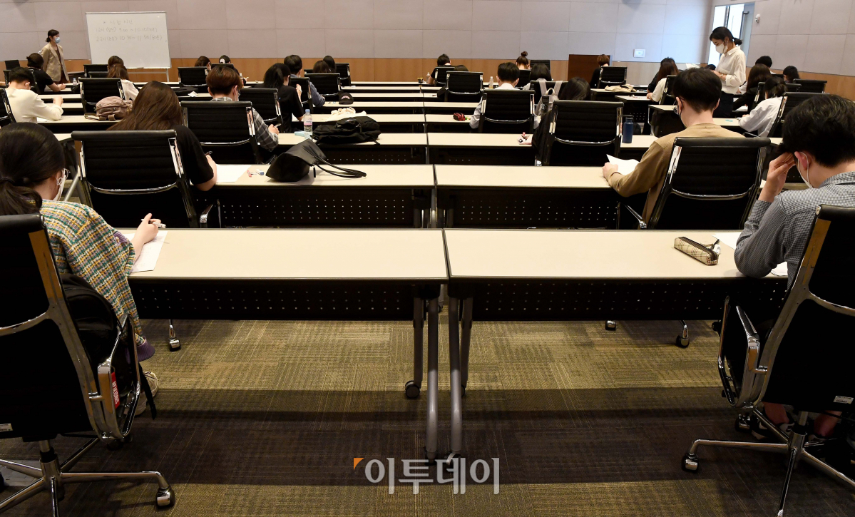 31일 서울 여의도 전경련회관 컨퍼런스센터에서 열린 이투데이 제14기 수습기자 공채 필기전형에서 응시생들이 시험을 치르고 있다. 신태현 기자 holjjak@