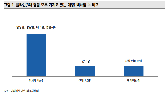 그는 “특히 신세계는 명품 매출 비중이 높아 중저가 의류ㆍ잡화를 구매하려는 고객수 하락을 낙수효과에 따른 고객당 단가 상승으로 일부 상쇄 가능할 것으로 보인다”며 “꾸준한 명품 수요에 따라 신세계가 가장 빠른 정상화를 이룰 것이다”고 전망했다.