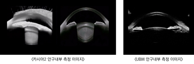 빛을 이용하는 카시아2와는 달리 UBM은 생체초음파를 활용해 눈 내부를 진단한다. 특히 카시아2의 경우 360도 측정을 통해 단면이 아닌 3D 안구 모델링까지 가능하다. 렌즈삽입술을 고려하고 있다면 카시아2 검사가 가능한 의료 환경을 선택하는 것이 권장된다.