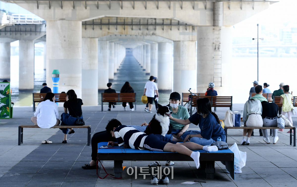 서울 낮 최고기온이 30도를 기록하는 등 전국이 초여름 날씨를 보인 7일 서울 여의도 마포대교 아래에서 시민들이 더위를 식히고 있다. 기상청은 오는 8일 대구 낮기온이 34도를 나타내고 충북과 경북내륙지역에 폭염주의보를 발효하는 등 무더위가 계속될 것으로 예보했다.