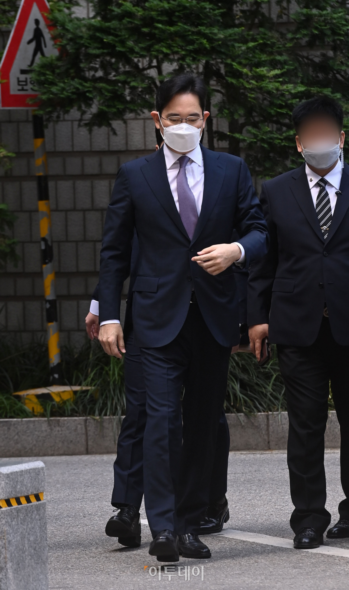 불법 경영승계 의혹을 받는 이재용 삼성전자 부회장이 8일 서울 서초구 서울중앙지방법원에서 열린 구속 전 피의자 심문(영장실질심사)에 출석하고 있다.