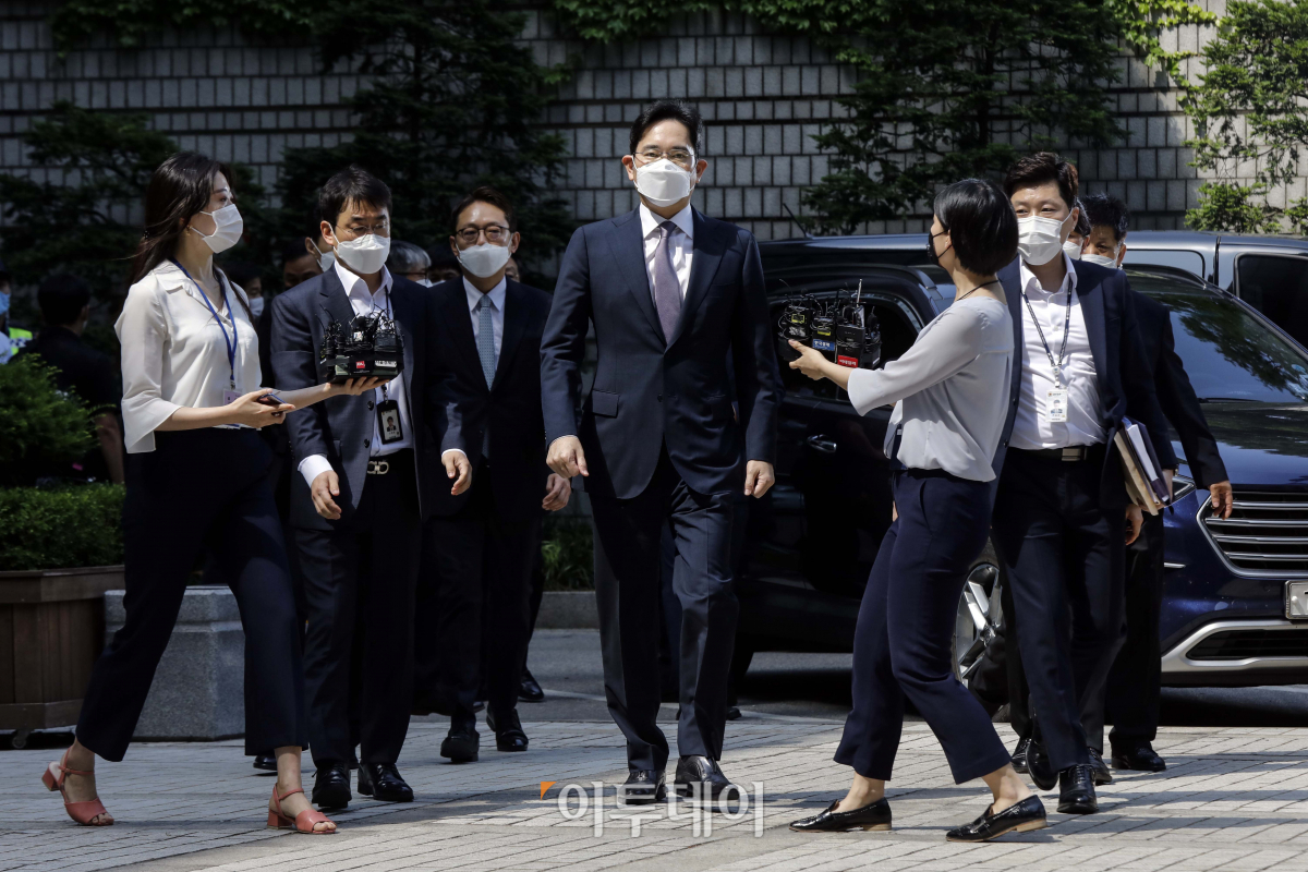 불법 경영승계 의혹을 받는 이재용 삼성전자 부회장이 8일 서울 서초구 서울중앙지방법원에서 열린 구속 전 피의자 심문(영장실질심사)에 출석하고 있다.