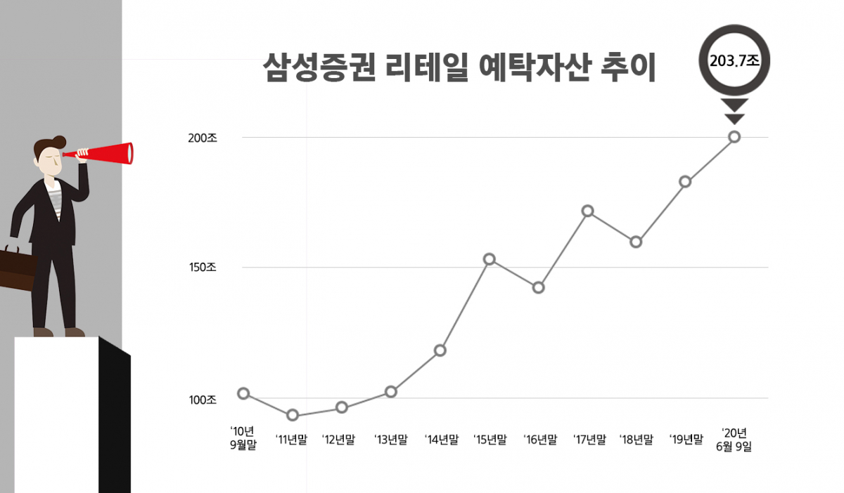 삼성증권은 10일 증권업계에서 최초로 WM(리테일)예탁자산 200조 원을 돌파했다고 밝혔다.