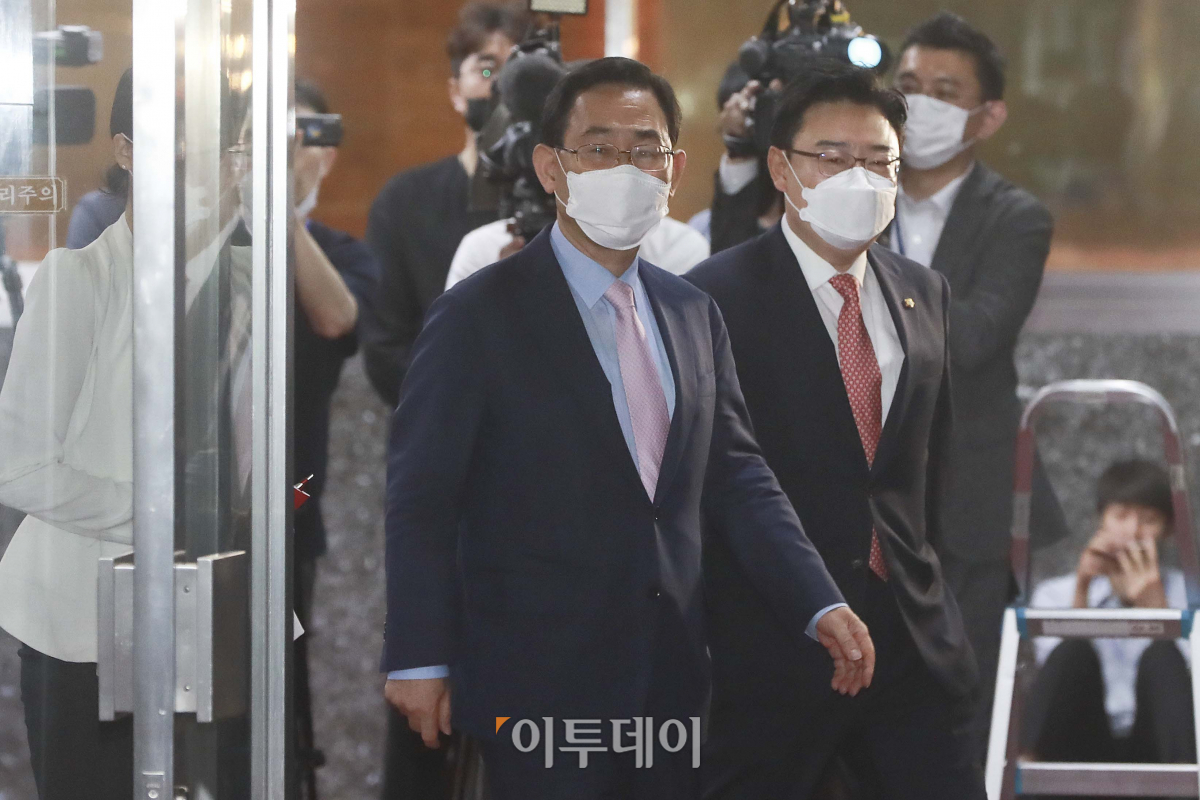 [포토] 원구성 협상 회동 참석하는 주호영 원내대표