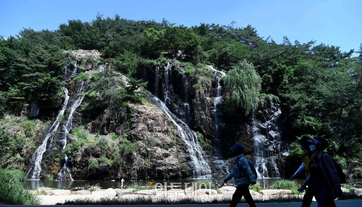 서울 낮 최고기온이 32도를 기록하는 등 전국이 무더운 날씨를 보인 11일 서울 서대문구 홍제천 인공폭포가 청량감을 전하고 있다.