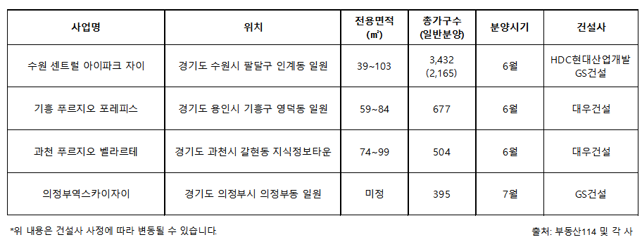 다음달엔 의정부 의정부동 일대에서 '의정부역 스카이 자이'가 공급된다. 총 395가구 규모로 GTX C노선을 통해 삼성역, 양재역 등 강남권으로 빠르게 이동할 수 있다.