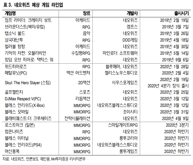 이어 “하반기 웹보드는 성수기 시즌에 돌입하면서 다시 매출 성장을 보일 전망이다”며 “하반기에는 다수의 신작 게임이 예정됐는데, 스컬(글로벌 정식버전), 여신풍폭(중국), 로스트아크(일본), 블레스언리쉬드(PS4) 등 해외 출시를 준비하고 있다”고 덧붙였다.