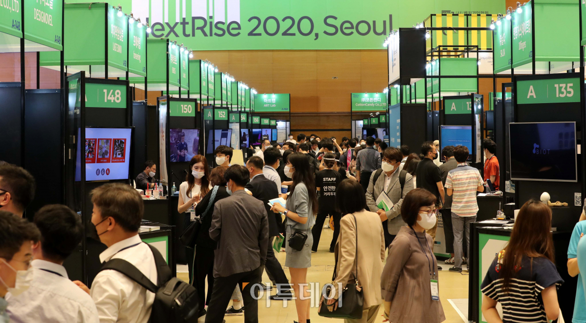 23일 서울 강남구 코엑스에서 열린 ‘넥스트라이즈 2020, 서울’ 행사장이 참관객들로 붐비고 있다. 글로벌 스타트업 페어인 ‘넥스트라이즈 2020, 서울’에선 24일 까지 국내외 대기업 84개사, 벤처투자사(VC)·엑셀러레이터(AC) 35개사가 참여해 스타트업과 1700건의 1대1 미팅을 진행하고 80개의 온-오프라인 컨퍼런스 강연, 스타트업 200여개사가 참가하는 국내 최대 규모의 전시도 함께한다.