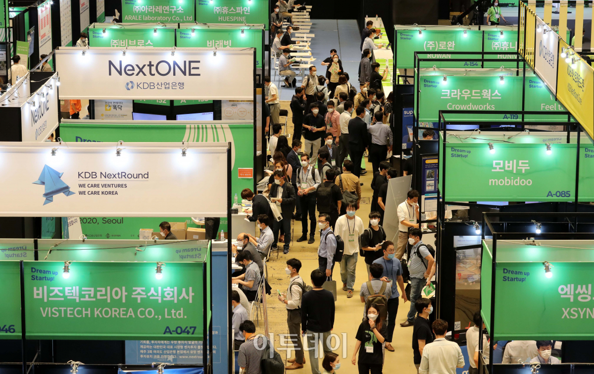 23일 서울 강남구 코엑스에서 열린 ‘넥스트라이즈 2020, 서울’ 행사장이 참관객들로 붐비고 있다. 글로벌 스타트업 페어인 ‘넥스트라이즈 2020, 서울’에선 24일 까지 국내외 대기업 84개사, 벤처투자사(VC)·엑셀러레이터(AC) 35개사가 참여해 스타트업과 1700건의 1대1 미팅을 진행하고 80개의 온-오프라인 컨퍼런스 강연, 스타트업 200여개사가 참가하는 국내 최대 규모의 전시도 함께한다.