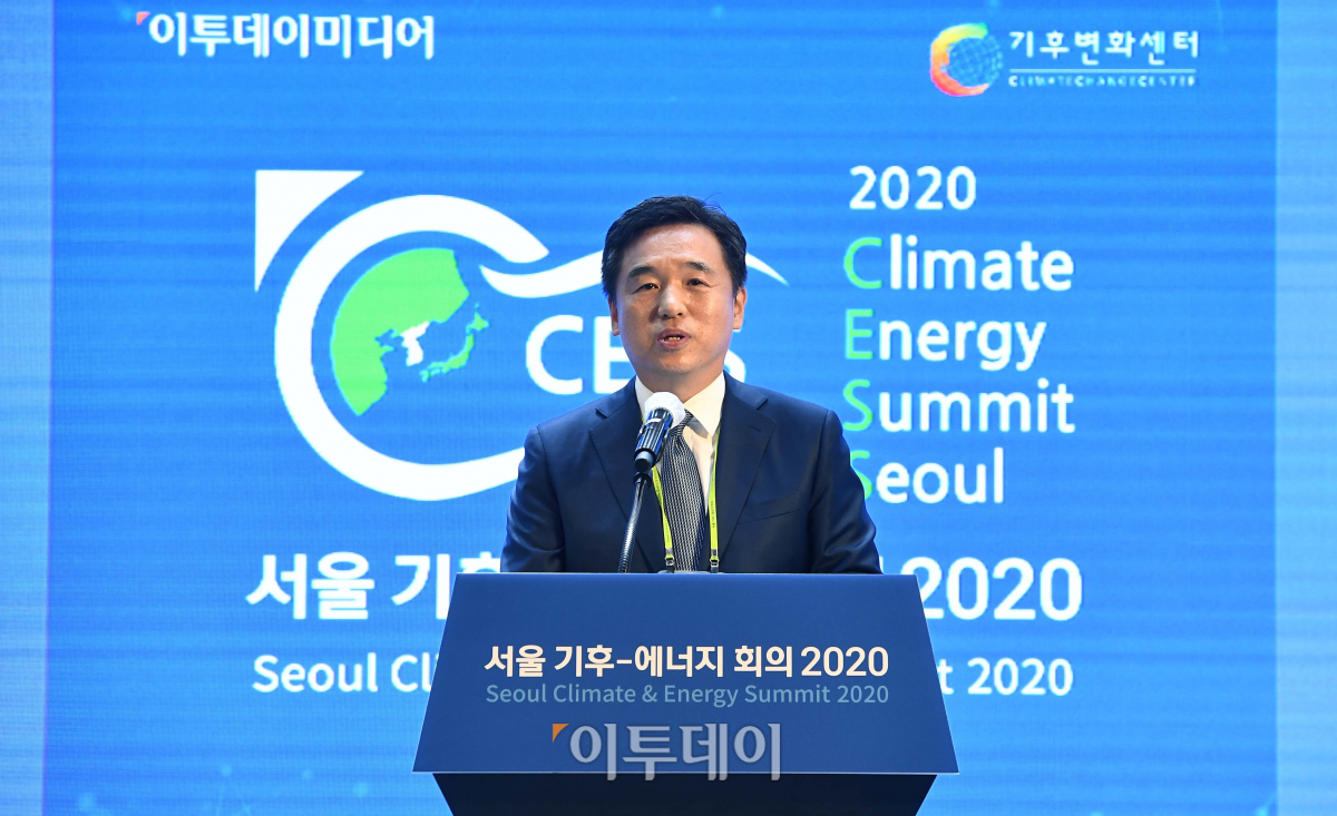 서정협 서울시 행정1부시장이 25일 서울 중구 노보텔 앰배서더 서울 동대문 그랜드볼룸에서 열린 '서울 기후-에너지 회의 2020(CESS 2020)'에서 축사를 하고 있다. 새로운 물결을 맞이하다 '포스트 코로나 시대' 그린뉴딜을 위한 순환경제를 주제로 열린 이날 행사는 재단법인 기후변화센터와 이투데이미디어가 공동 주최했다.