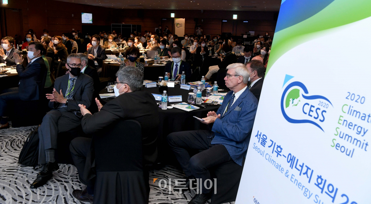25일 서울 중구 노보텔 앰배서더 서울 동대문 그랜드볼룸에서 열린 '서울 기후-에너지 회의 2020(CESS 2020)'에서 참석자들이 연사의 강연을 경청하고 있다. 새로운 물결을 맞이하다 '포스트 코로나 시대' 그린뉴딜을 위한 순환경제를 주제로 열린 이날 행사는 재단법인 기후변화센터와 이투데이미디어가 공동 주최했다.