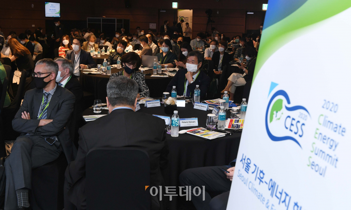 25일 서울 중구 노보텔 앰배서더 서울 동대문 그랜드볼룸에서 열린 '서울 기후-에너지 회의 2020(CESS 2020)'에서 참석자들이 연사의 강연을 경청하고 있다. 새로운 물결을 맞이하다 '포스트 코로나 시대' 그린뉴딜을 위한 순환경제를 주제로 열린 이날 행사는 재단법인 기후변화센터와 이투데이미디어가 공동 주최했다.