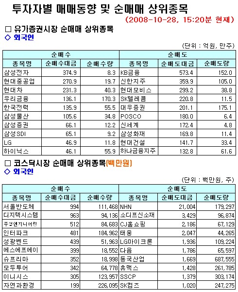 28일 오후 3시 20분 거래소의 잠정집계에 따르면 외국인은 이날 유가증권시장에서 1조2869억원을 매수하고 1조5689억원을 매도해 연속 순매도일을 10거래일로 늘렸다.