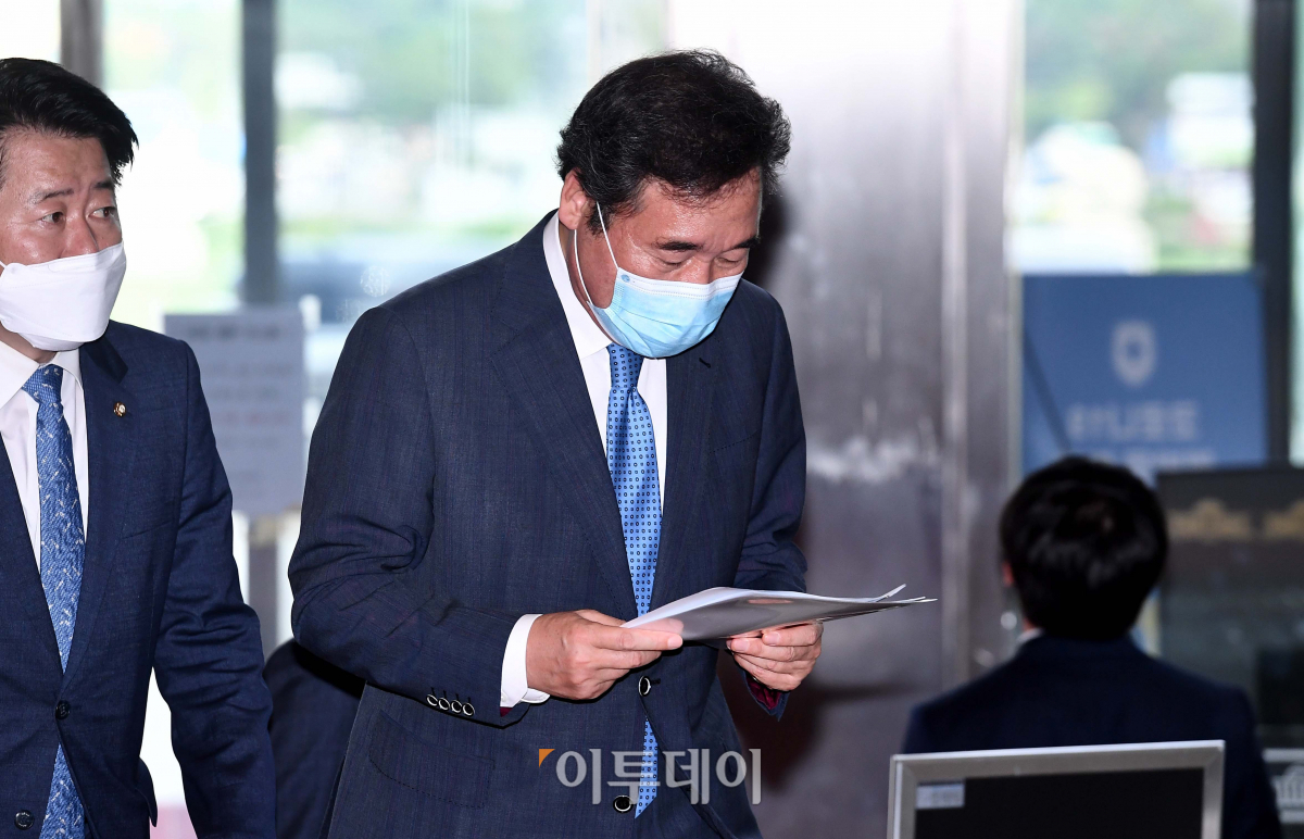 이낙연 더불어민주당 의원이 9일 서울 여의도 국회에서 열린 민주당 비공개 의원총회에 참석하고 있다.