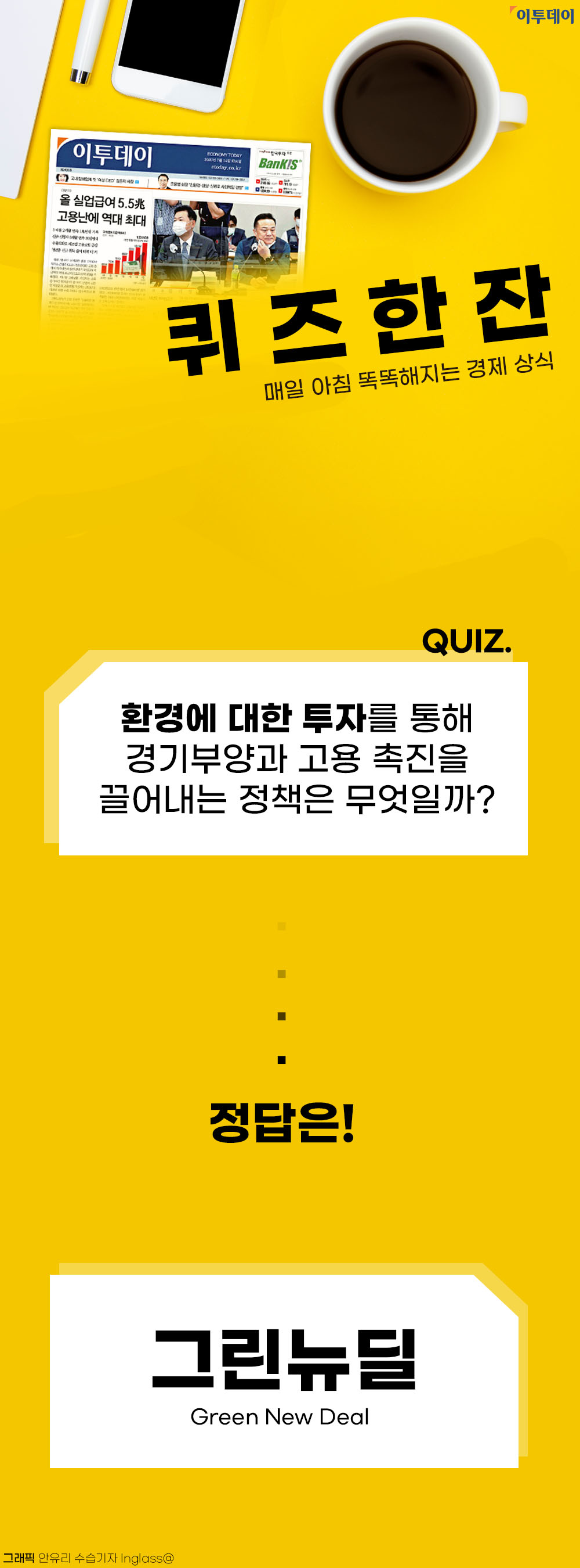 '퀴즈한잔'은 매일 한 문제씩 이투데이와 함께하는 경제 상식 퀴즈입니다! 매일 아침 커피 한 잔을 마시듯 퀴즈를 풀며 경제 상식을 키워나가세요!