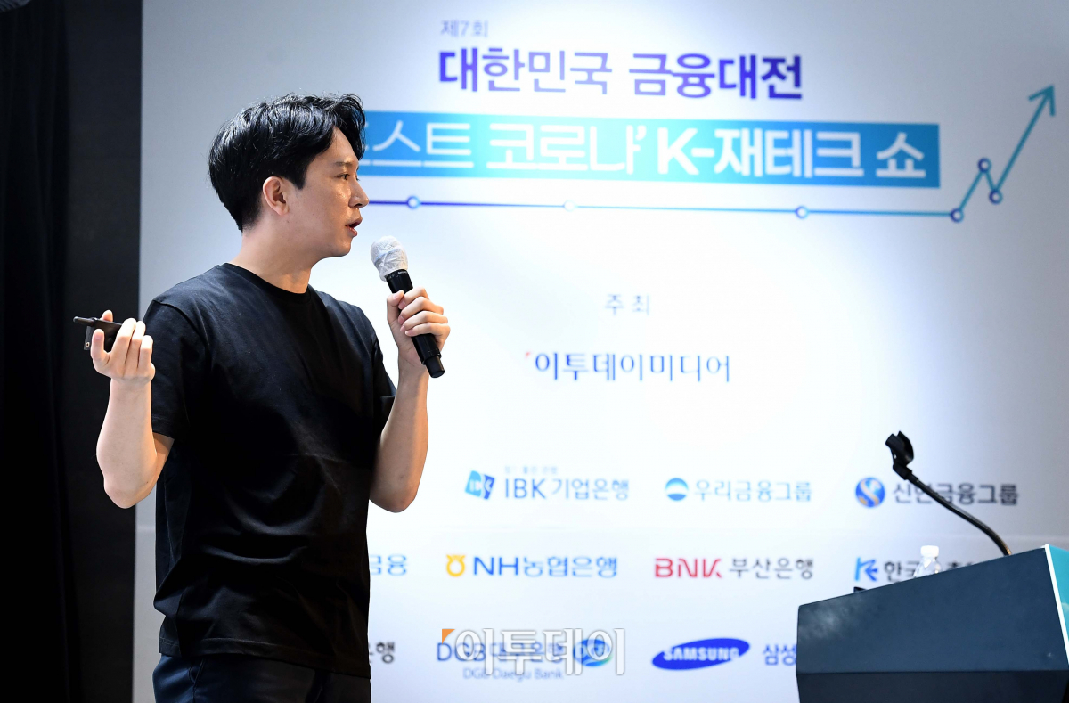 주언규(신사임당) 온라인콘텐츠 창작자가 15일 서울 중구 노보텔 앰배서더 서울 동대문 그랜드볼룸에서 열린 제7회 대한민국 금융대전 ‘포스트 코로나 K-재테크 쇼’에서 ‘평범한 사람이 돈 버는 방법’을 주제로 세미나를 하고 있다. 신경제 트렌드 전망을 제시하고 삶의 질을 윤택하게 할 금융정보를 국민에게 확산하며 창업과 취업의 꿈을 향한 도전에 힘을 보태기 위해 진행된 이번 행사는 이투데이미디어가 주최했다.