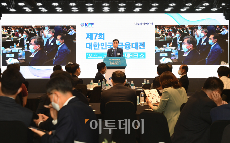 윤관석 국회정무위원장이 15일 서울 중구 노보텔 앰배서더 서울 동대문 그랜드볼룸에서 열린 제7회 대한민국 금융대전 '포스트 코로나 K-재테크 쇼'에서 축사를 하고 있다. 신 경제 트렌드 전망을 제시하고 삶의 질을 윤택하게 할 금융정보를 국민에게 확산하며 창업과 취업의 꿈을 향한 도전에 힘을 보태기 위해 진행된 이번 행사는 이투데이미디어가 주최했다. 고이란 기자 photoeran@
