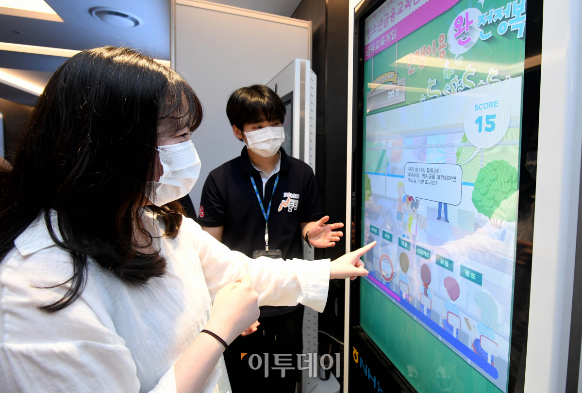 15일 서울 중구 노보텔 앰배서더 서울 동대문 그랜드볼룸에서 열린 제7회 대한민국 금융대전 ‘포스트 코로나 K-재테크 쇼’에서 한 참석자가 NH농협금융의 미디어월로 금융교육게임 체험을 하고 있다. 신경제 트렌드 전망을 제시하고 삶의 질을 윤택하게 할 금융정보를 국민에게 확산하며 창업과 취업의 꿈을 향한 도전에 힘을 보태기 위해 진행된 이번 행사는 이투데이미디어가 주최했다.
