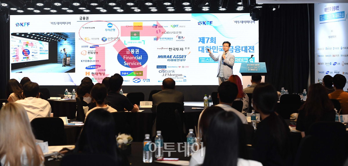 석의현 커리어빅 대표가 15일 서울 중구 노보텔 앰배서더 서울 동대문 그랜드볼룸에서 열린 제7회 대한민국 금융대전 ‘포스트 코로나 K-재테크 쇼’에서 ‘은행을 JOB아라’를 주제로 세미나를 하고 있다. 신경제 트렌드 전망을 제시하고 삶의 질을 윤택하게 할 금융정보를 국민에게 확산하며 창업과 취업의 꿈을 향한 도전에 힘을 보태기 위해 진행된 이번 행사는 이투데이미디어가 주최했다.