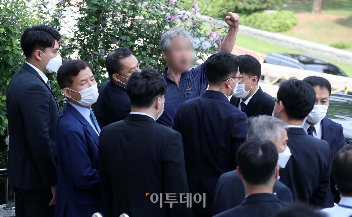 문재인 대통령이 21대 국회 개원식이 열린 16일 오후 서울 여의도 국회에서 개원 연설을 나서자 한 남성이 운동화를 집어던진 후 돌발 발언을 하고 있다.
