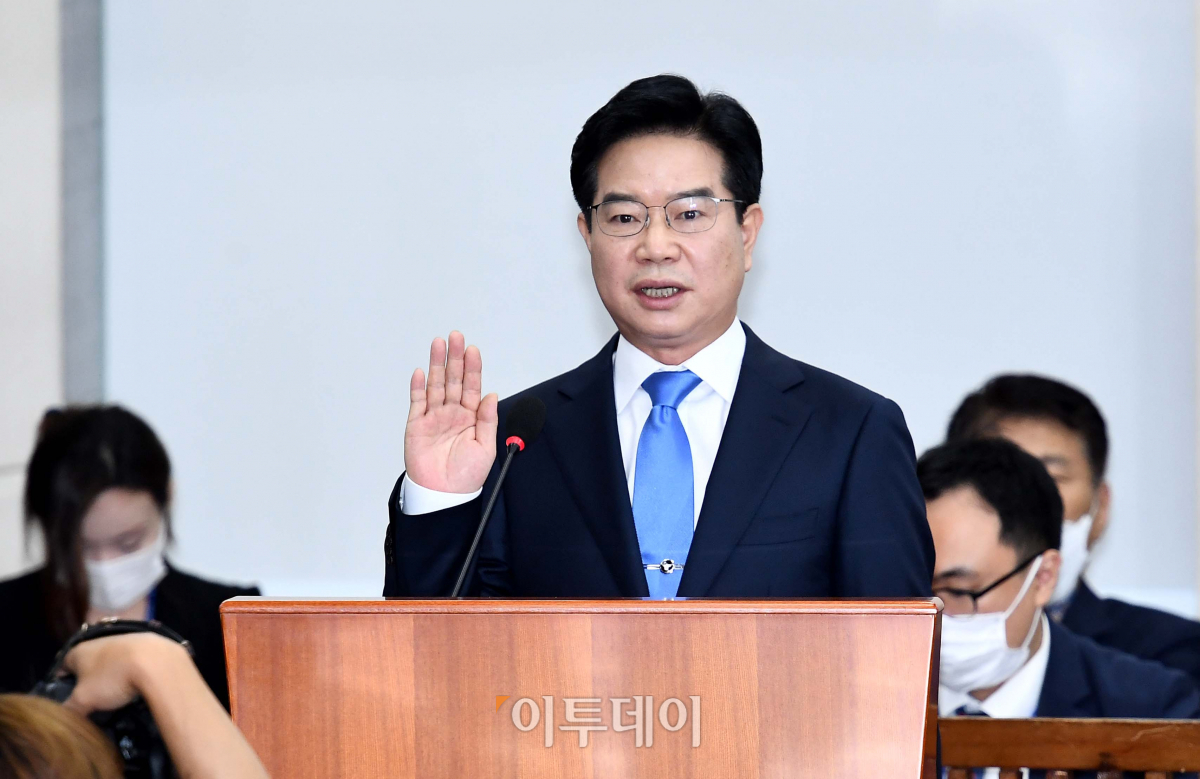 김창룡 경찰청장 후보자가 20일 서울 여의도 국회에서 열린 인사청문회에서 선서를 하고 있다.
