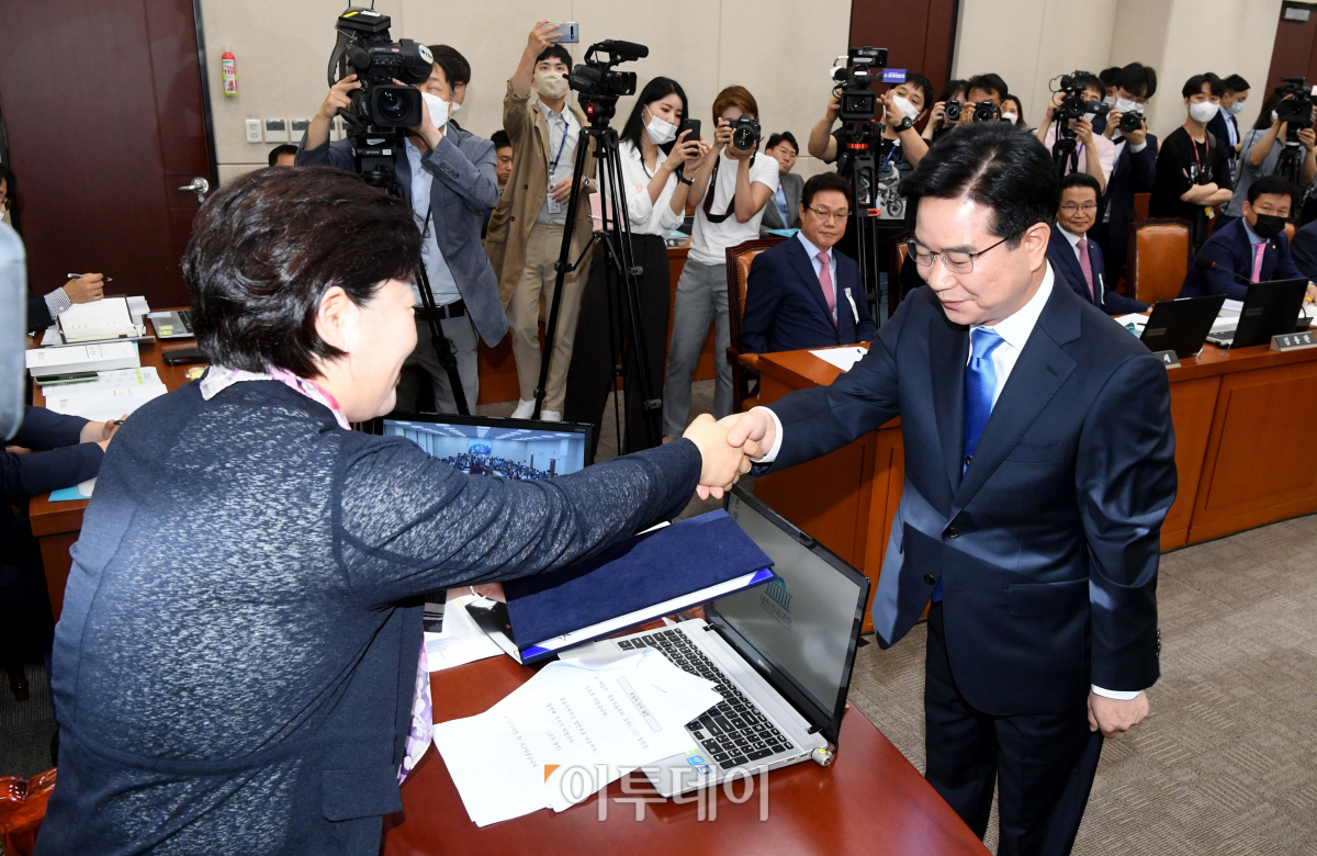 [포토] 서영교 위원장과 악수하는 김창룡 후보자