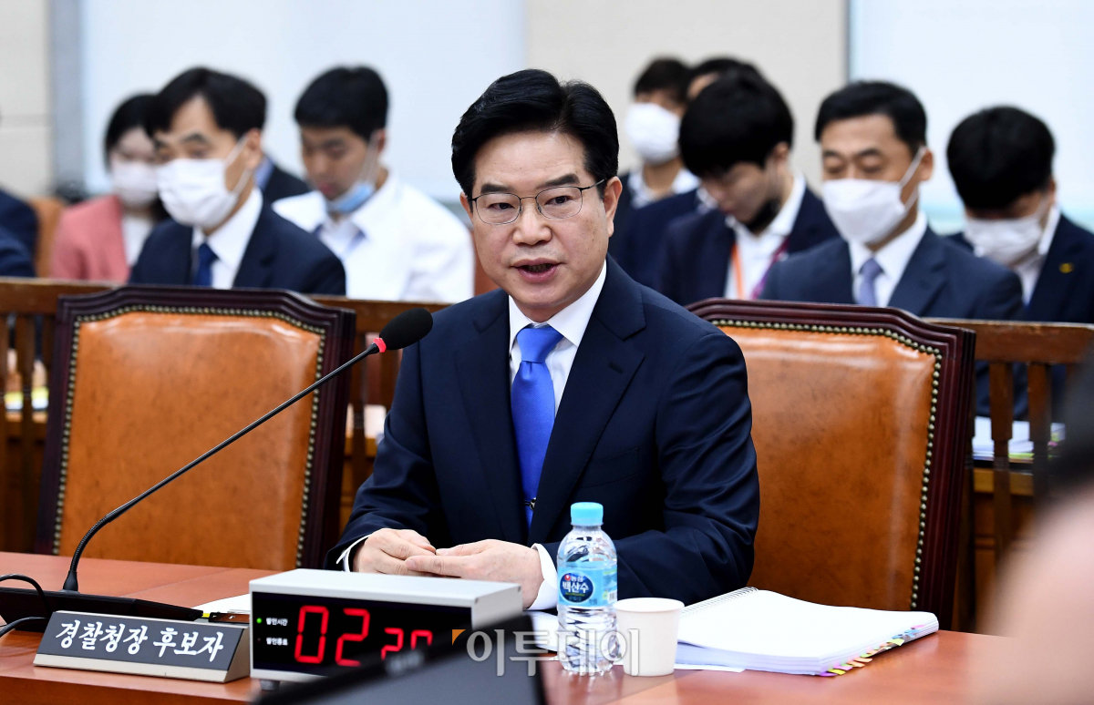 김창룡 경찰청장 후보자가 20일 서울 여의도 국회에서 열린 인사청문회에서 의원의 질의에 답하고 있다.