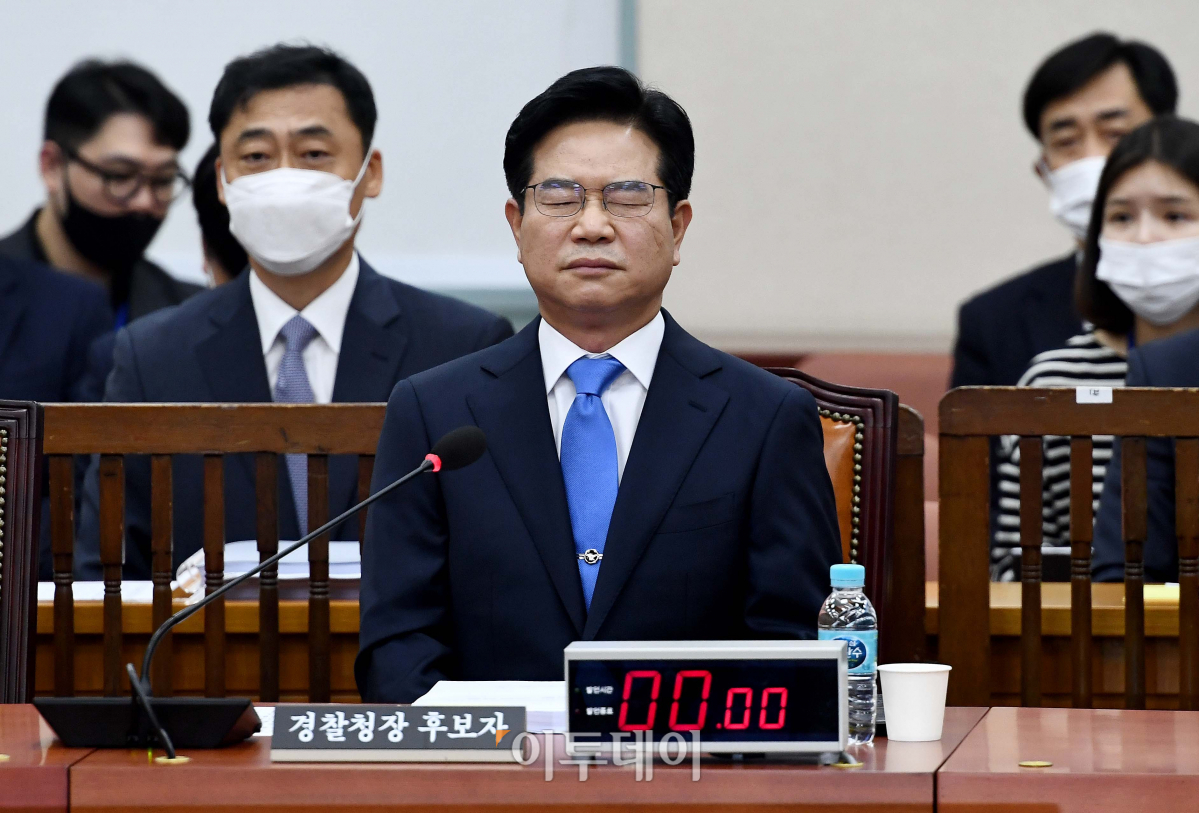 [포토] 눈 질끈 감은 김창룡 경찰청장 후보자