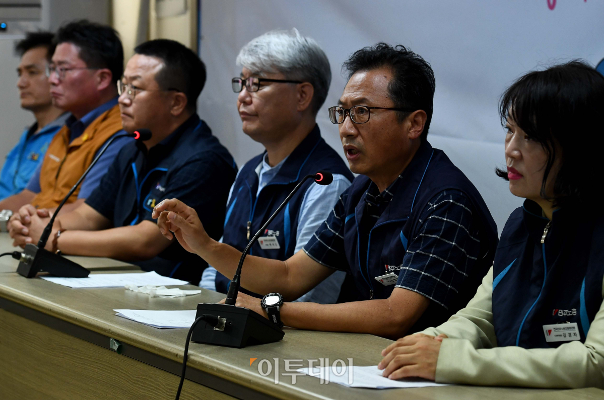 [포토] '노사정 합의안 부결' 사퇴 의사 밝힌 김명환 위원장