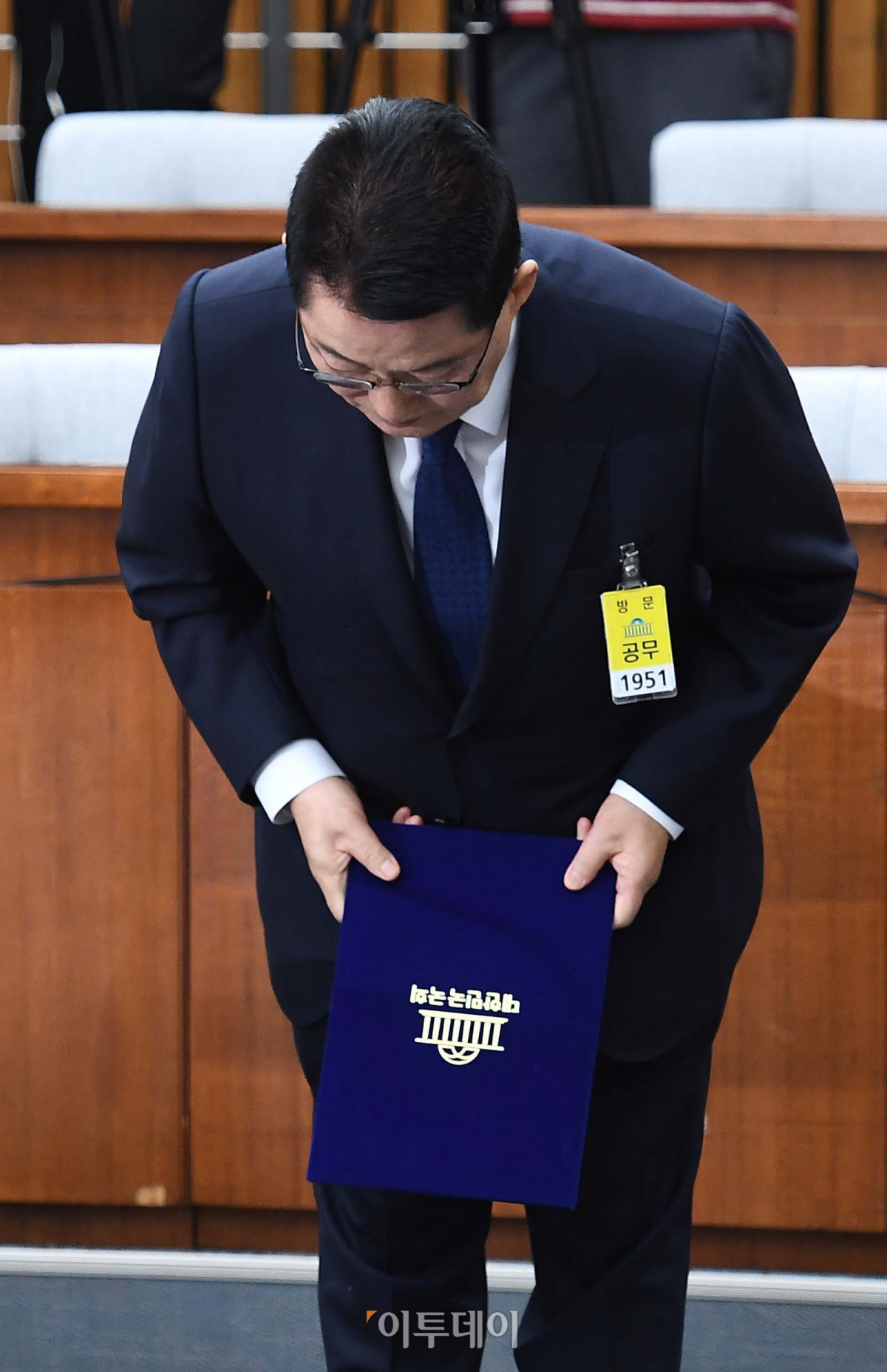 박지원 국가정보원장 후보자가 27일 서울 여의도 국회에서 열린 인사청문회에서 선서에 앞서 인사하고 있다.