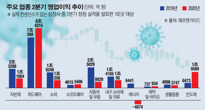 [2분기 실적 점검] 코로나19 업종별 희비 교차…반도체IT 웃고 중화학ㆍ제조업 울고