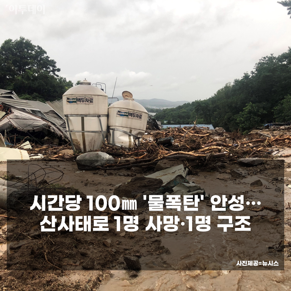 2일 시간당 100㎜가 넘는 폭우가 쏟아진 경기 안성 지역에서 산사태로 주민 1명이 매몰돼 숨졌습니다. 또 다른 주민 1명 역시 산사태로 인해 실종됐다가 극적으로 구조됐습니다.